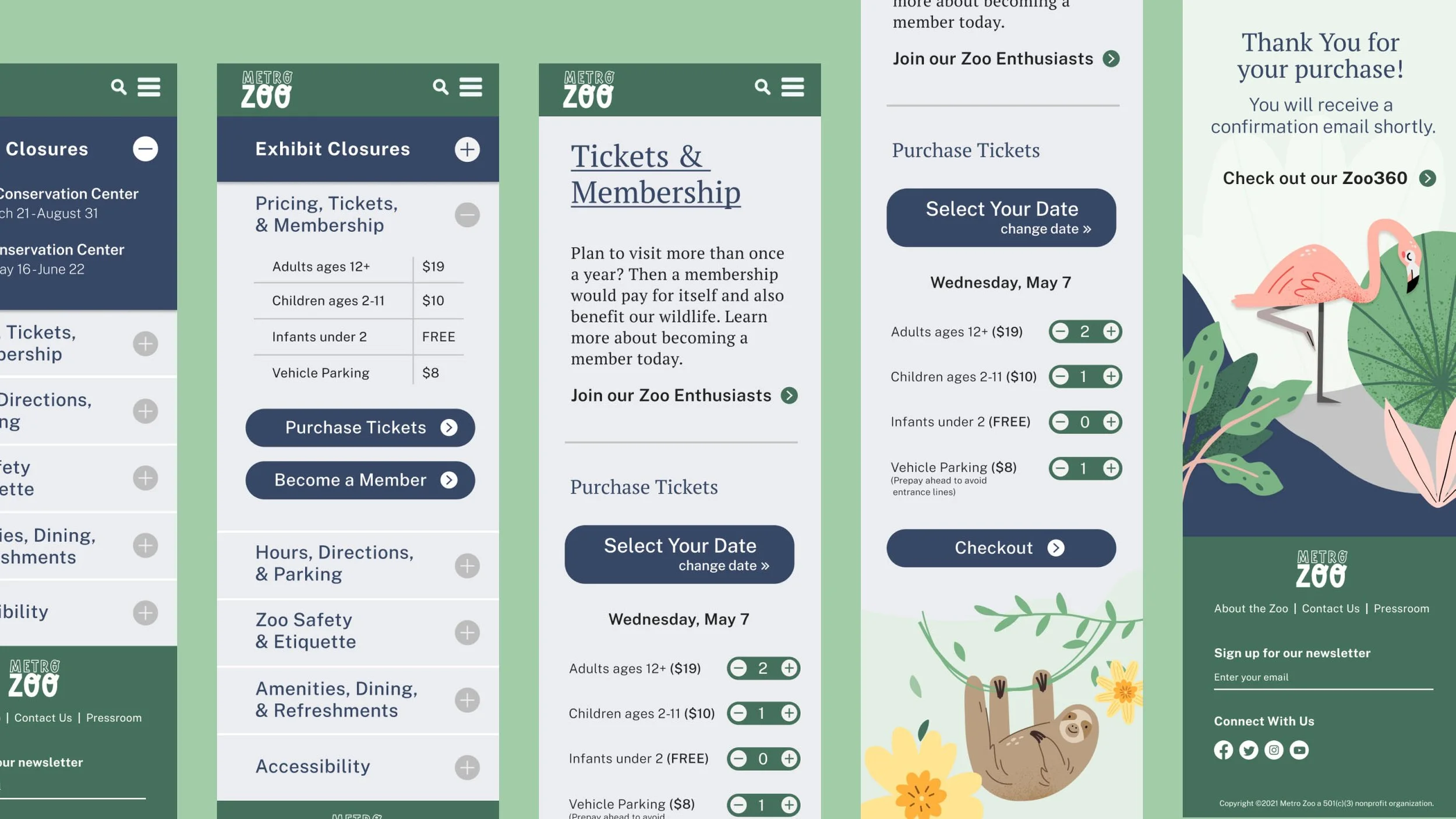 The prototype goal was to give users an easy yet fun booking experience. By supplying relevant information before they make a purchase and creating a smooth check out process, it provided a positive experience for customers before they step inside the zoo.