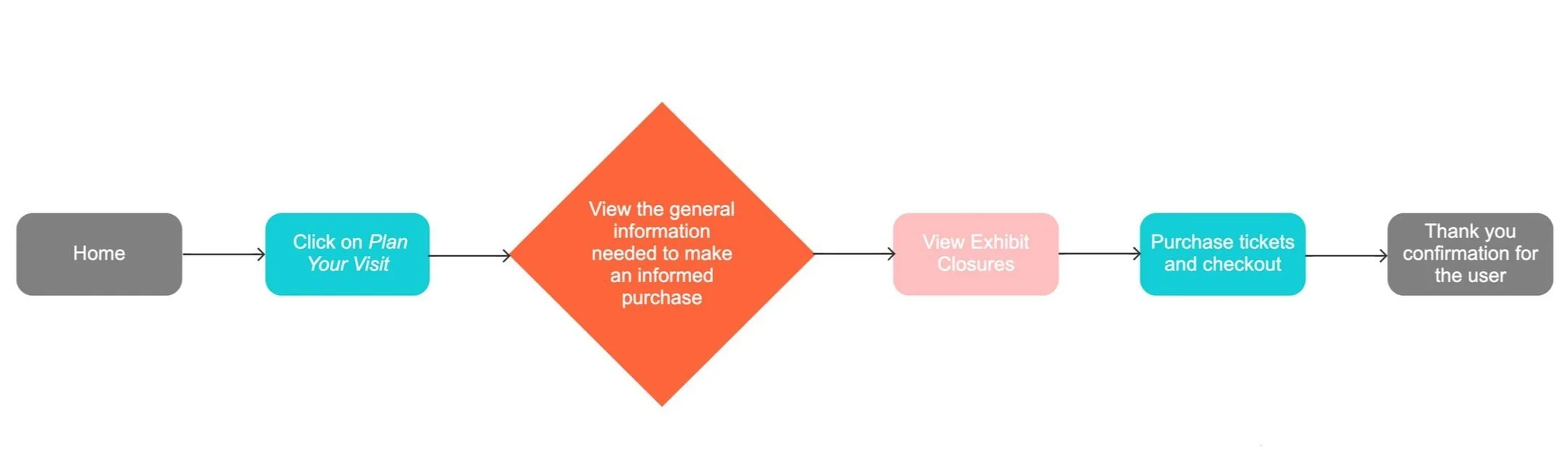 Based off user research I conducted, one of the largest visitor pain points was not having knowledge of exhibit closures ahead of their planned visit.